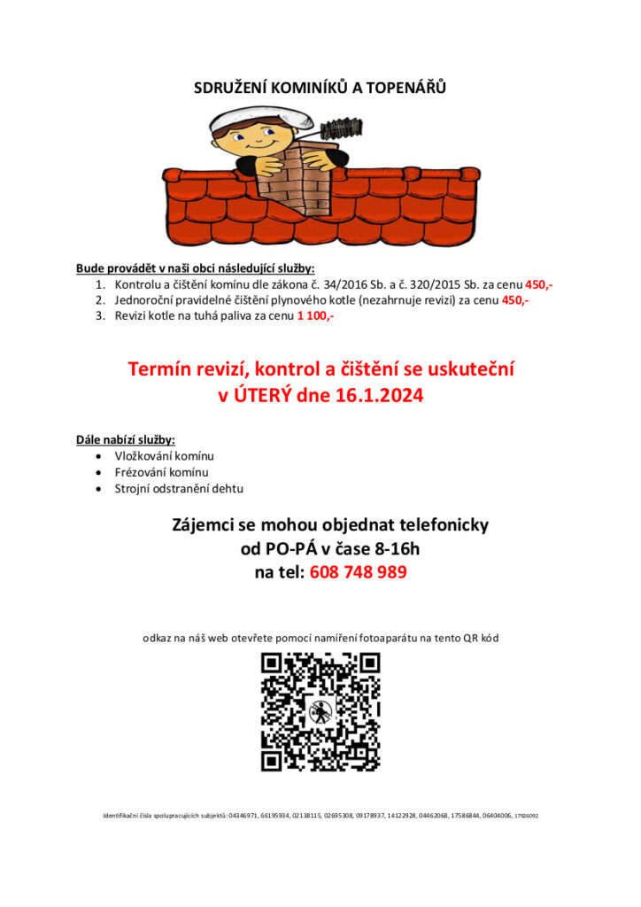 Nabídka kominických služeb.