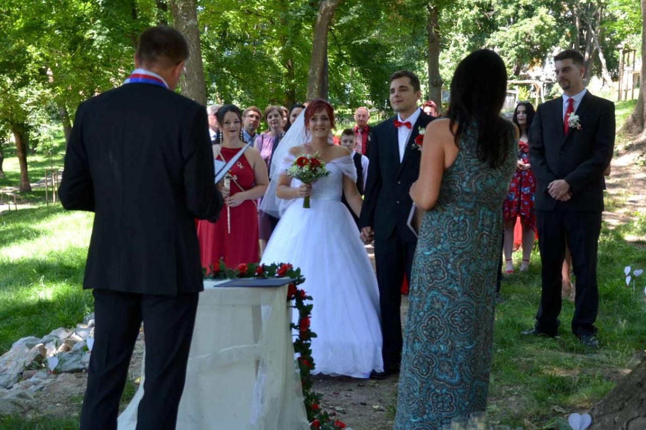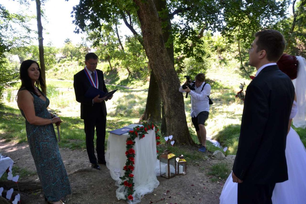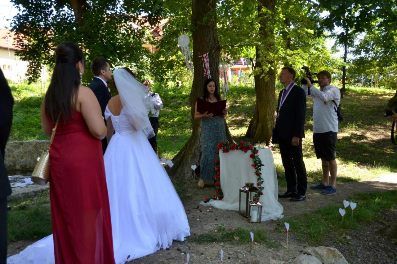 Za účasti starosty obce Hodonice Bc. Pavla Houště a matrikářky Ivany Kodytkové se v sobotu 10. července 2021 konal na Farské zahradě v Tasovicích svatební obřad.