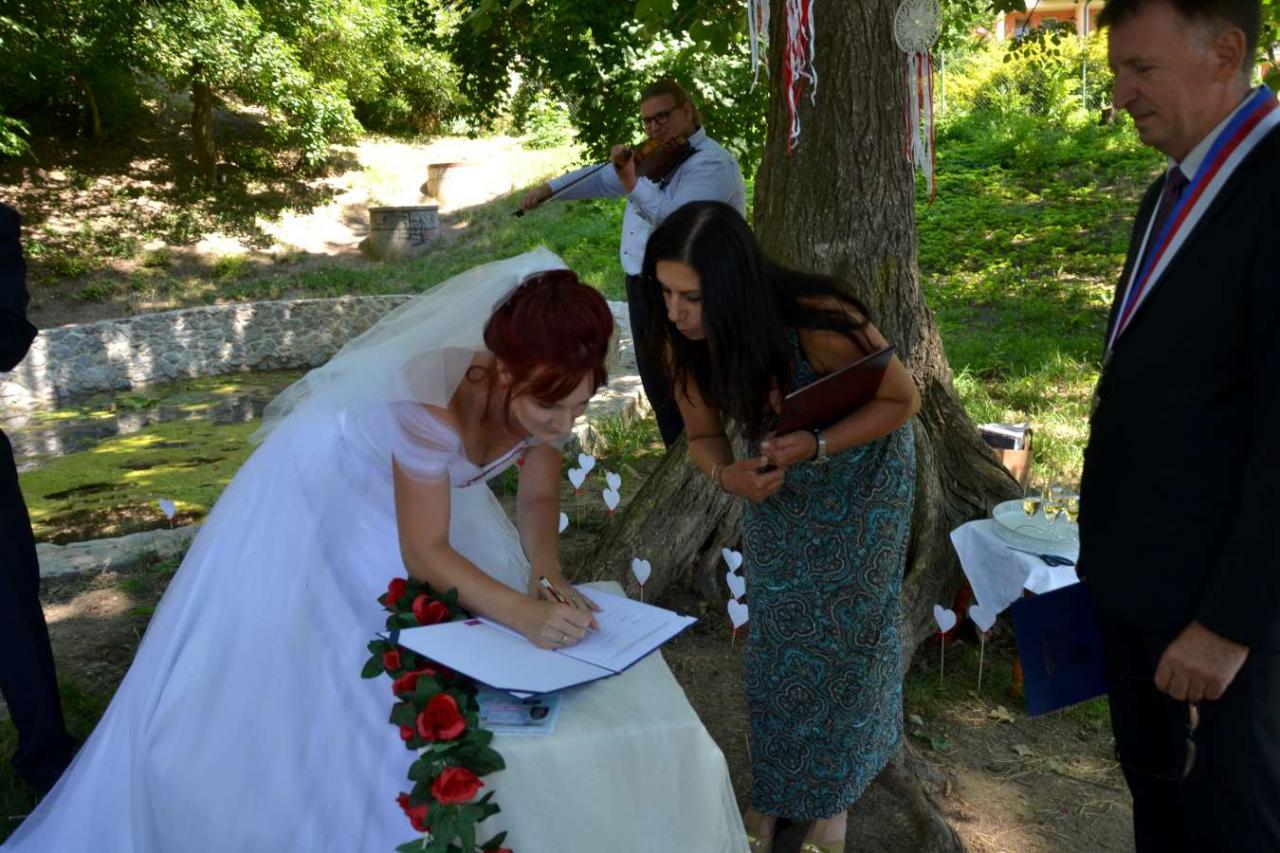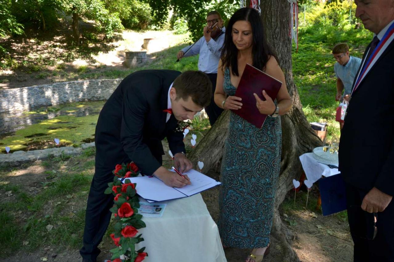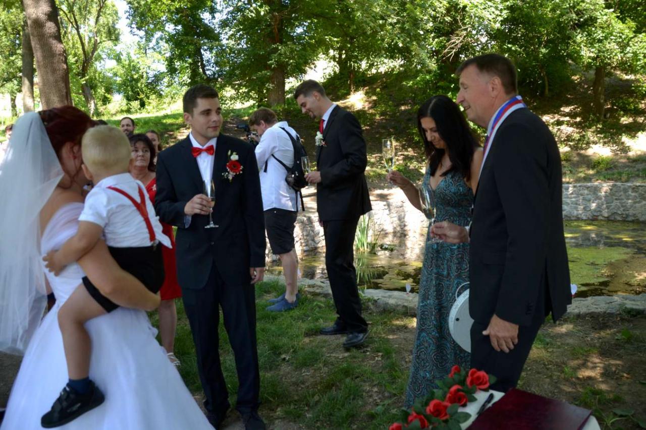 Za účasti starosty obce Hodonice Bc. Pavla Houště a matrikářky Ivany Kodytkové se v sobotu 10. července 2021 konal na Farské zahradě v Tasovicích svatební obřad.