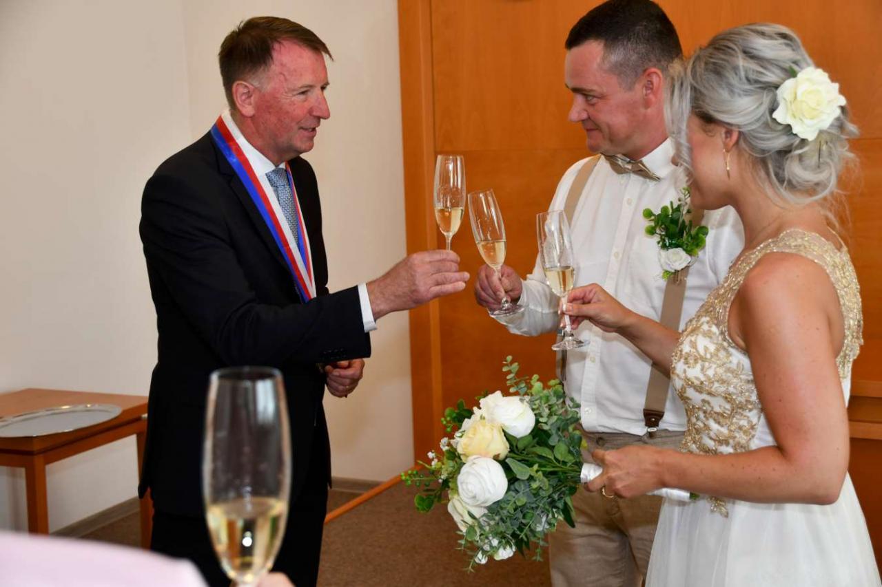 Za účasti starosty obce Hodonice Bc. Pavla Houště a matrikářky Ivany Kodytkové se v pondělí 6. června 2022 konal v obřadní síni kulturního domu v Hodonicích svatební obřad.