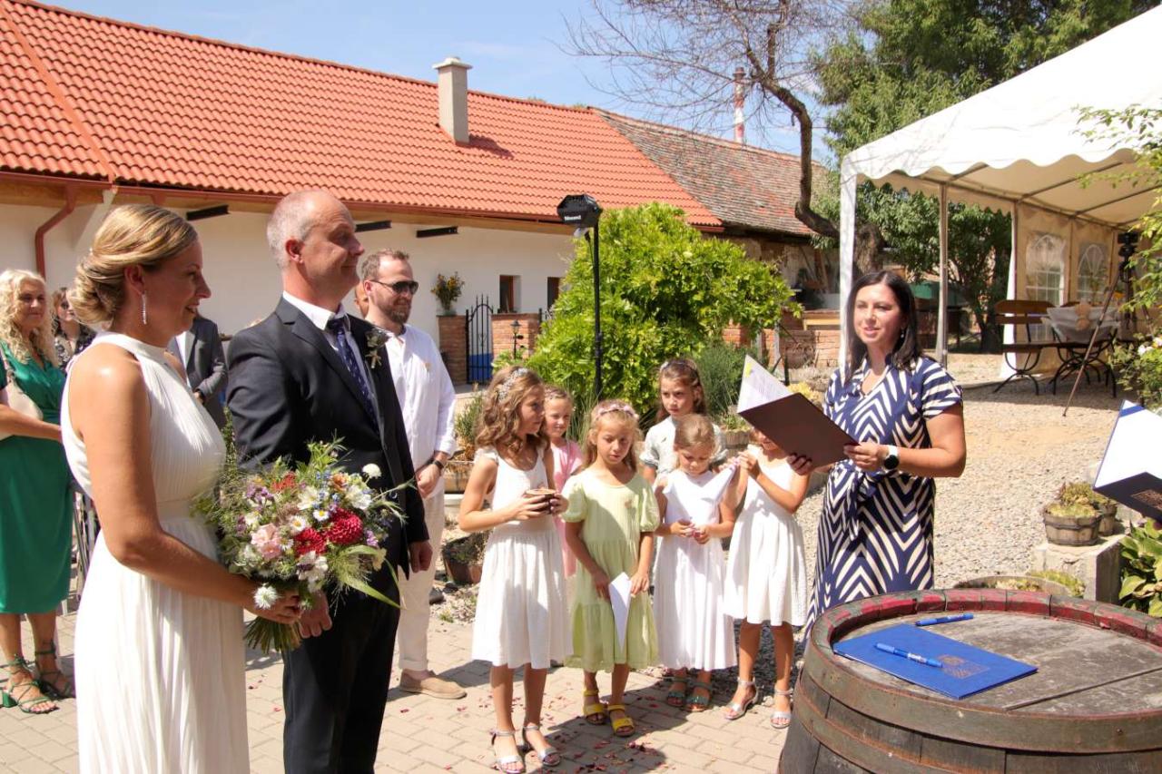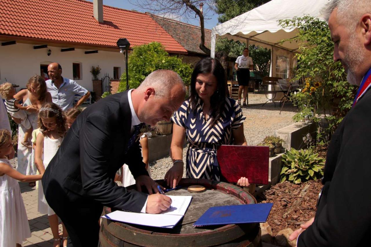 Za účasti místostarosty obce Hodonice Jana Procházky a matrikářky Ivany Kodytkové se v sobotu 27. července 2024 konal v Malované chalupě v Hodonicích svatební obřad.