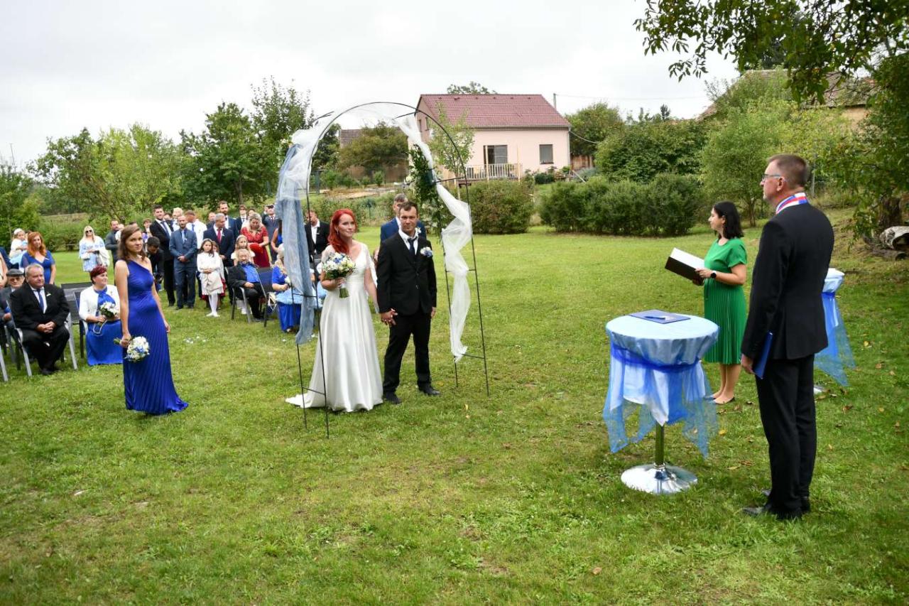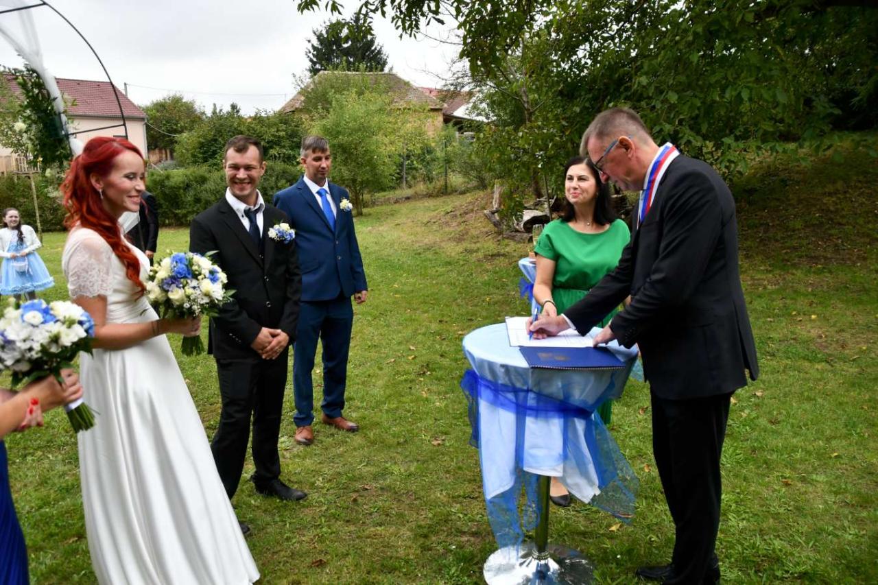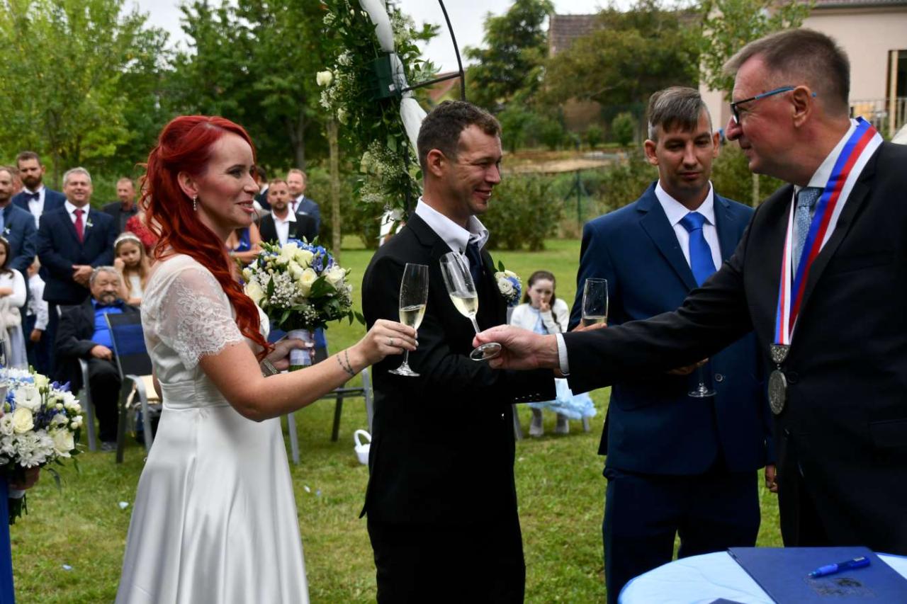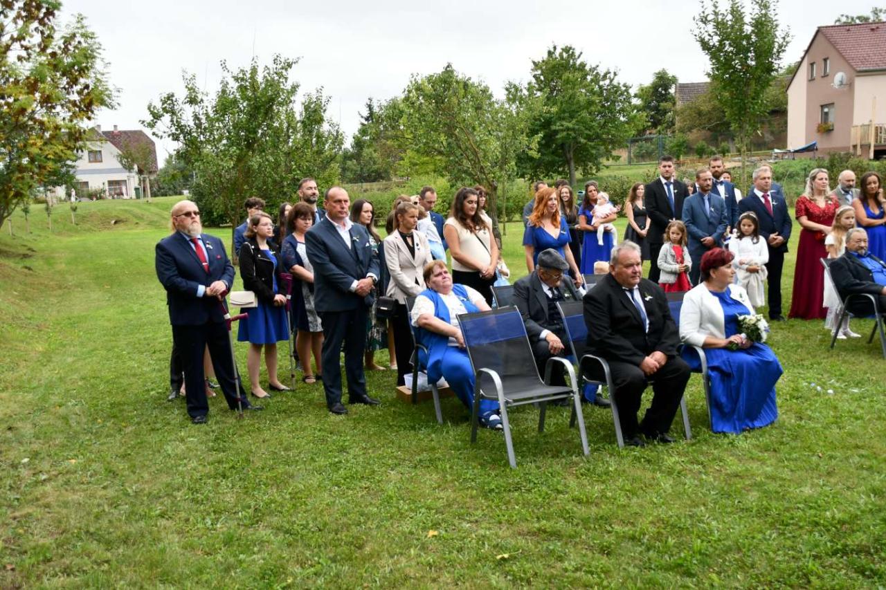 Za účasti starosty obce Hodonice Bc. Pavla Houště a matrikářky Ivany Kodytkové se v sobotu 13. září 2025 v Malované chalupě v Hodonicích a areálu farské zahrady v Tasovicích konaly svatební obřady.