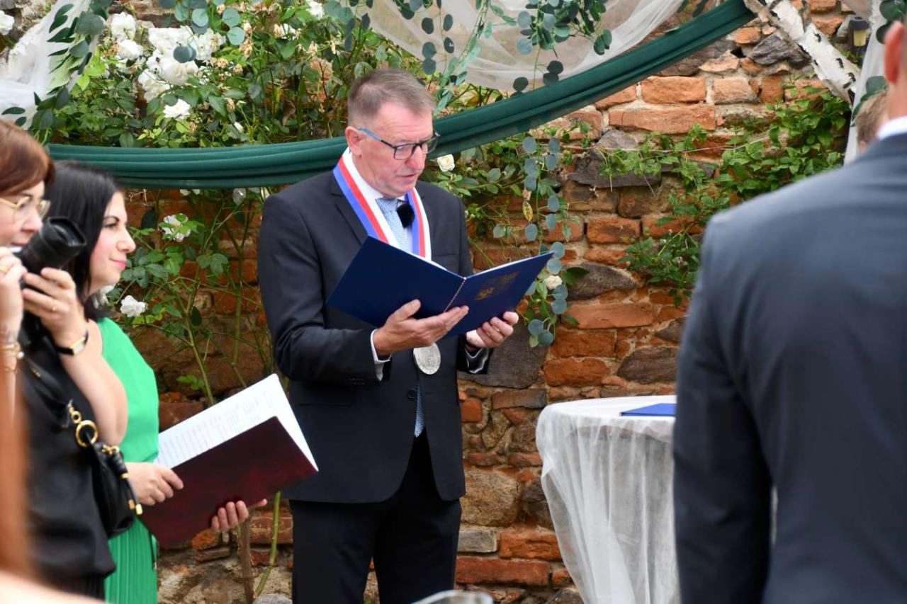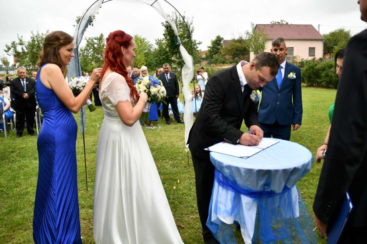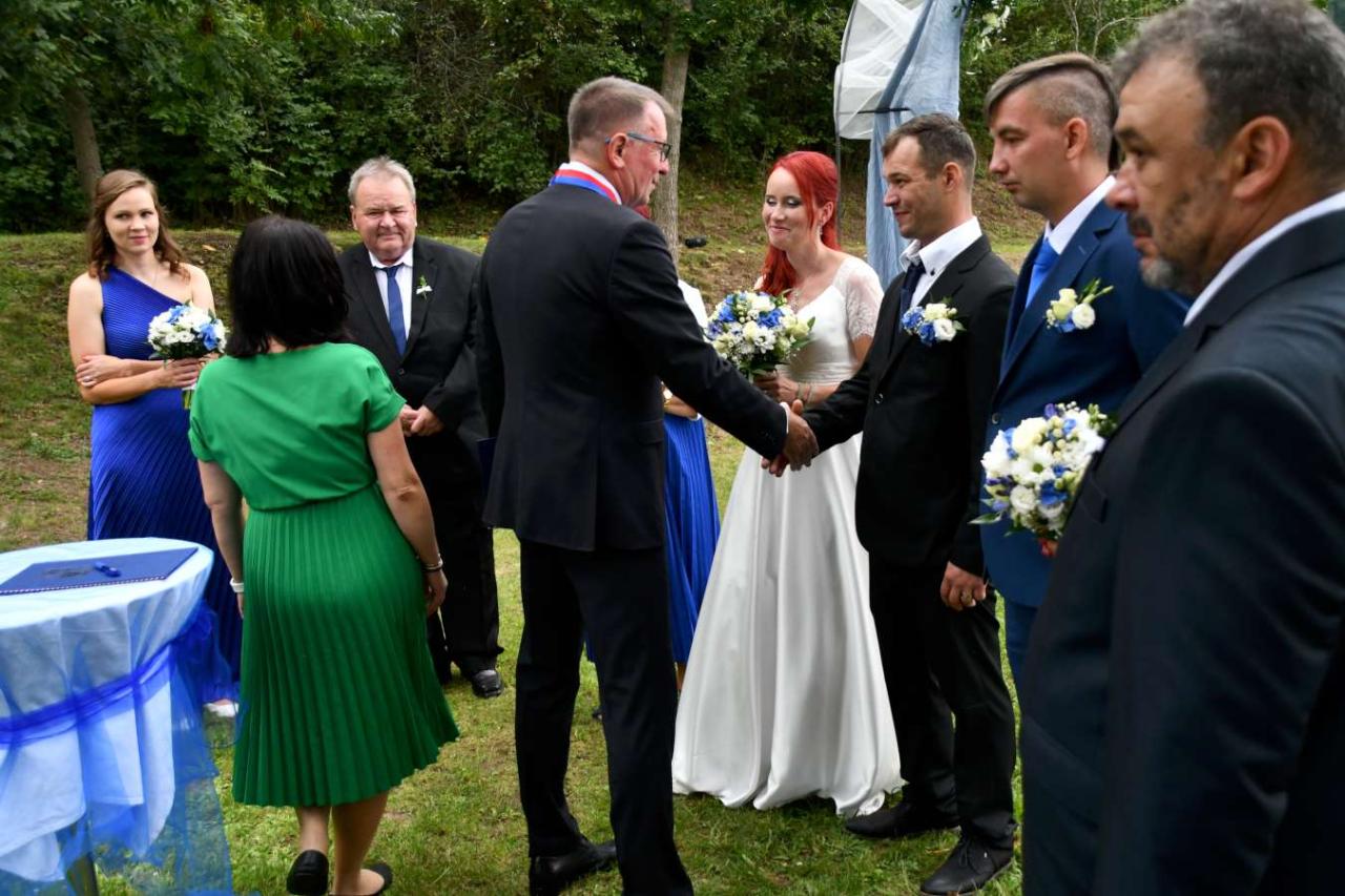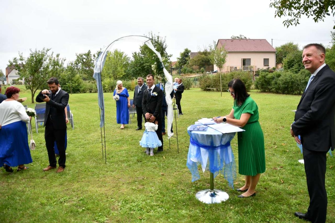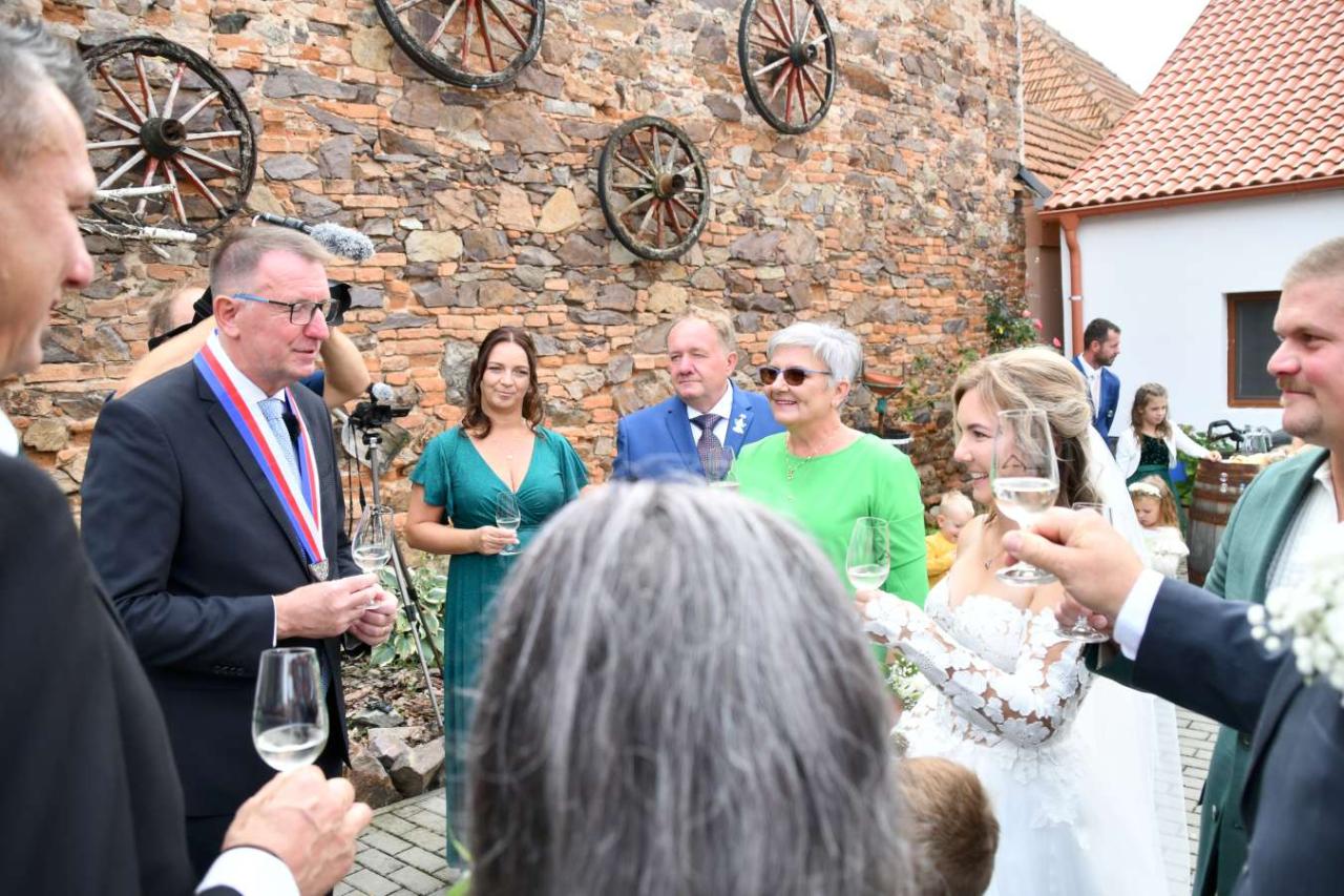 Za účasti starosty obce Hodonice Bc. Pavla Houště a matrikářky Ivany Kodytkové se v sobotu 13. září 2025 v Malované chalupě v Hodonicích a areálu farské zahrady v Tasovicích konaly svatební obřady.