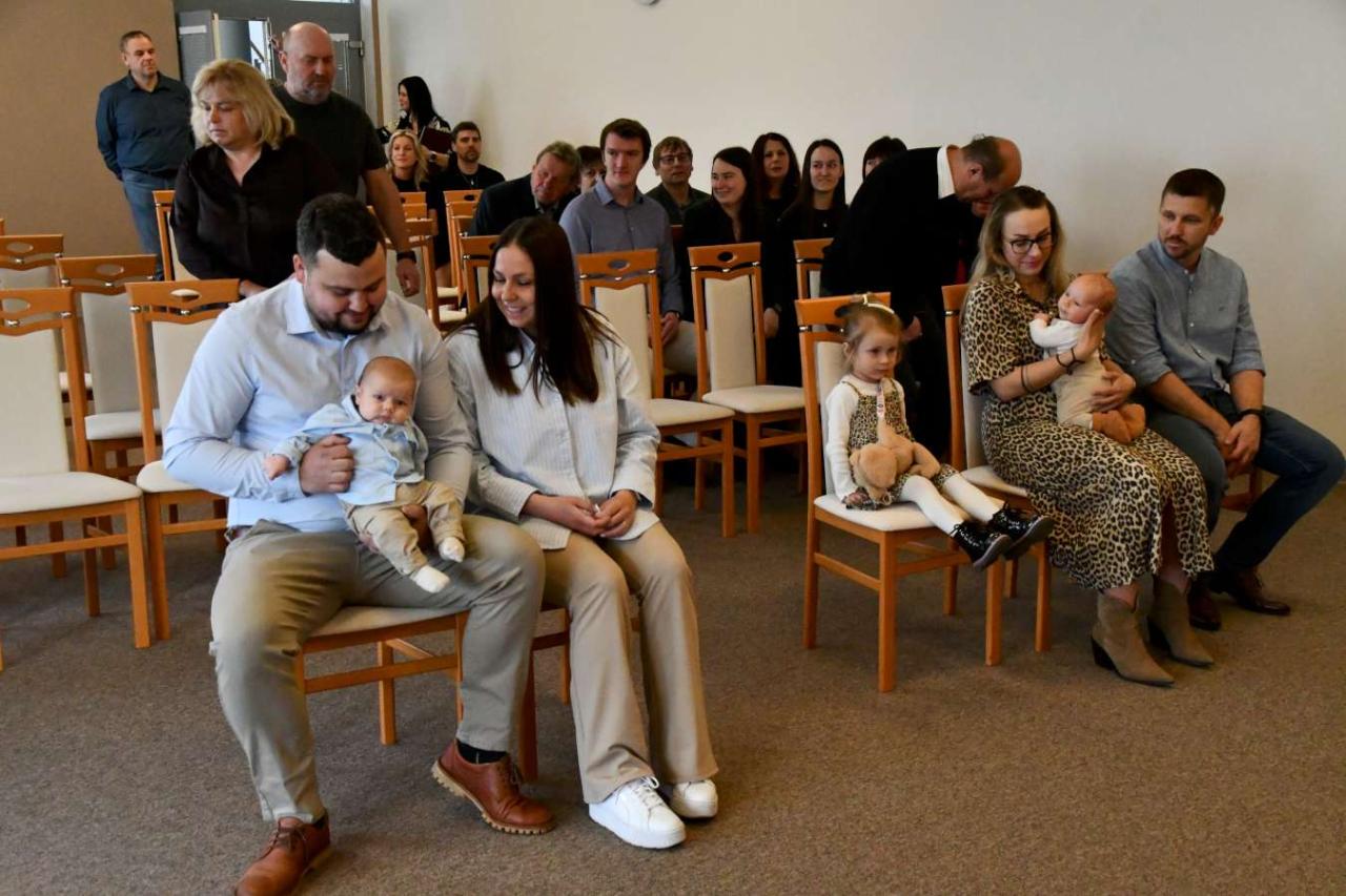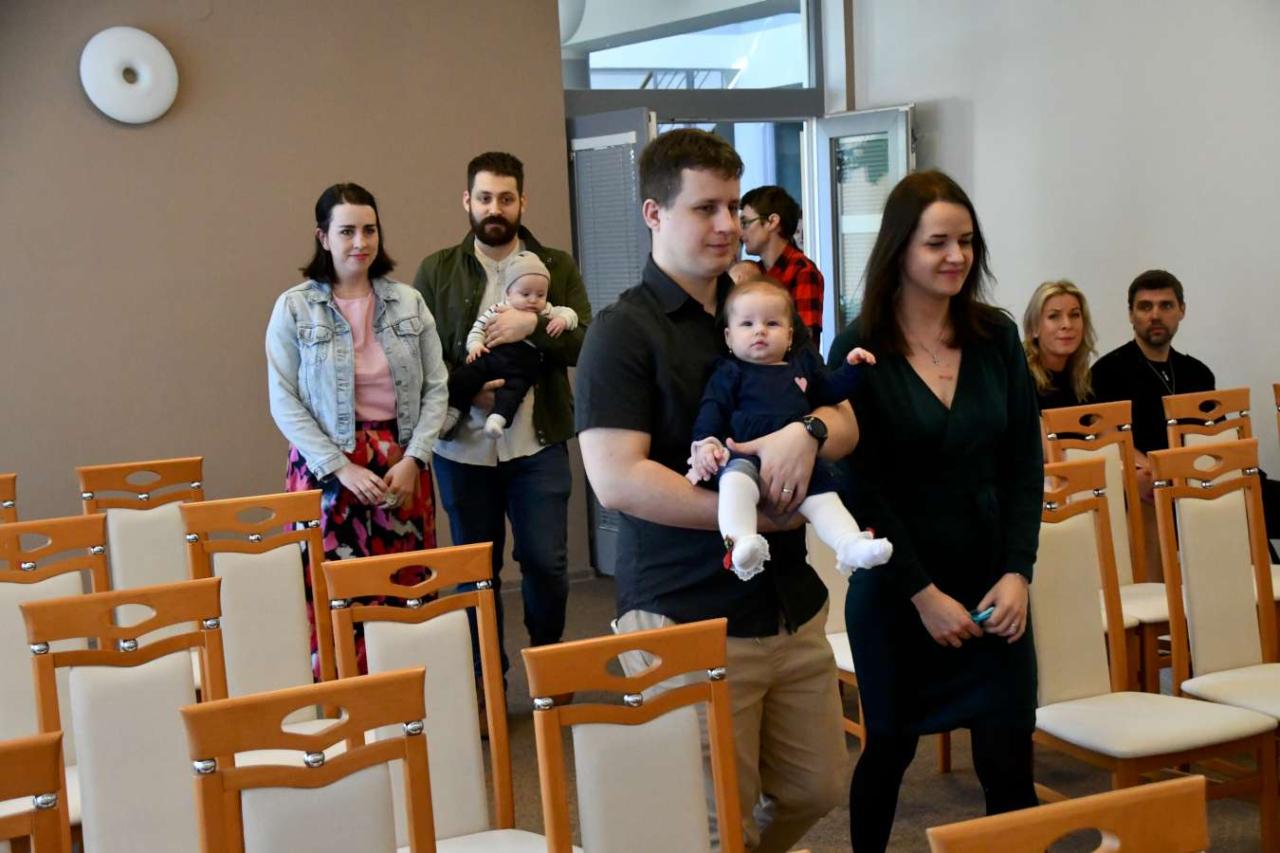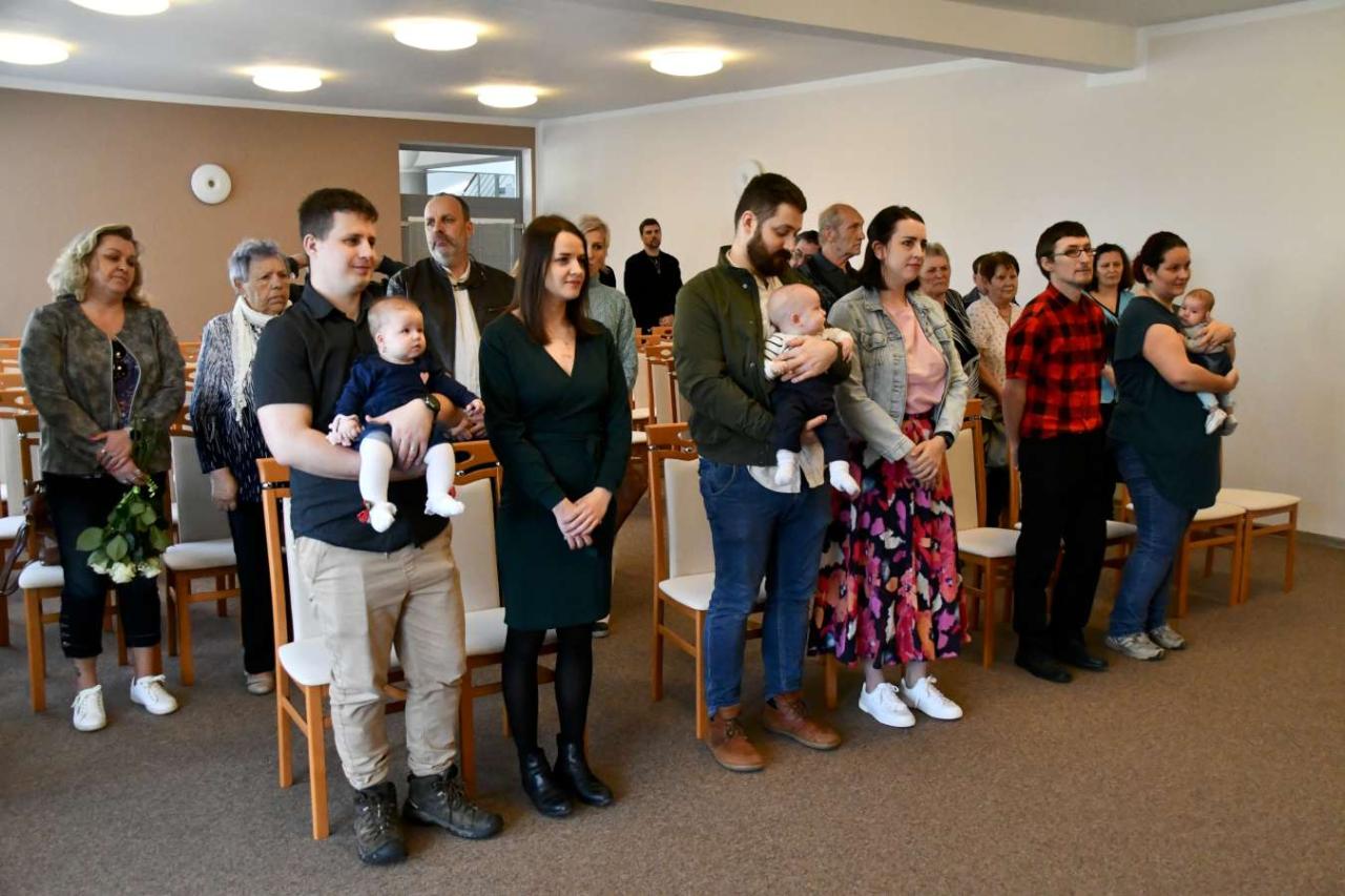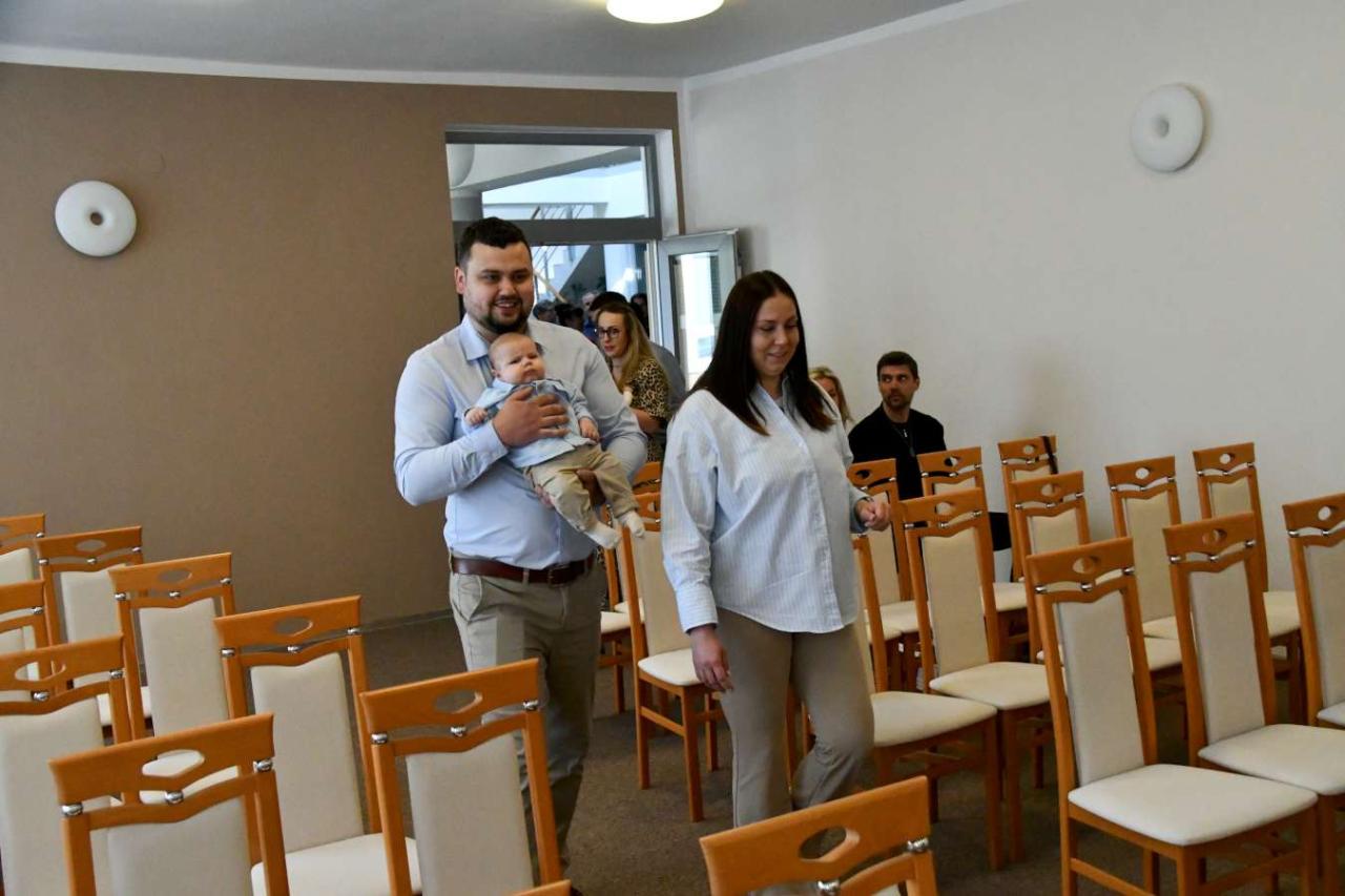 Za účasti starosty obce Hodonice Bc. Pavla Houště a matrikářky Ivany Kodytkové se v sobotu 5. dubna 2025 konalo v obřadní síni kulturního domu v Hodonicích slavnostní vítání občánků a svatební obřad.
